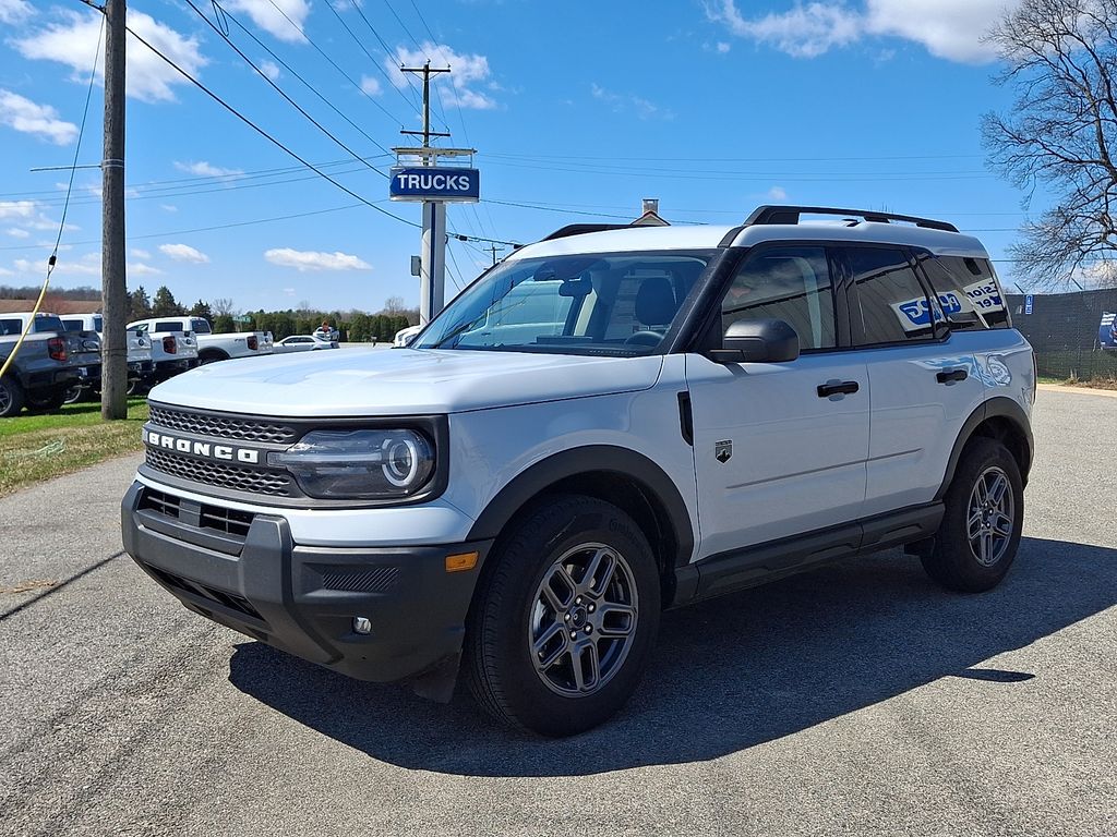 Convenience Package (Front Driver/Passenger Seat Back Map Pockets, Heated 8-Way Power Driver's Seat, LED Fog Lamps, and Premium Wrapped Steering Wheel), Equipment Group 200A Standard Package (AM/FM Stereo, Cloth with Easy-to-Clean Front Bucket Seats, SiriusXM with 360L, SYNC 4 with Enhanced Voice Recognition, and Wheels: 17" Carbonized Gray Painted Aluminum), Ford Connectivity Package (1-Year Included), Internet access capable: 5G Modem - Ford Connectivity Package, 2nd Row Carpeted Seatback, 4-Wheel Disc Brakes, 6 Speakers, ABS brakes, Air Conditioning, Alloy wheels, AM/FM radio: SiriusXM with 360L, Apple CarPlay/Android Auto, Auto High-beam Headlights, Automatic temperature control, Brake assist, Cargo Management System (Shelf/Divider/Table), Compass, Delay-off headlights, Driver door bin, Driver vanity mirror, Dual front impact airbags, Dual front side impact airbags, Electronic Stability Control, Emergency communication system: SYNC 4 911 Assist, Exterior Parking Camera Rear, Four wheel independent suspension, Front anti-roll bar, Front Bucket Seats, Front Center Armrest, Front License Plate Bracket, Front reading lights, Fully automatic headlights, Heated door mirrors, Illuminated entry, Keyless Entry Keypad, Knee airbag, Liftgate with Black BRONCO SPORT Lettering, Low tire pressure warning, Occupant sensing airbag, Outside temperature display, Overhead airbag, Overhead console, Panic alarm, Passenger door bin, Passenger vanity mirror, Power door mirrors, Power steering, Power windows, Radio data system, Rear anti-roll bar, Rear Parking Sensors, Rear reading lights, Rear seat center armrest, Rear window defroster, Rear window wiper, Remote keyless entry, Security system, SiriusXM with 360L (3-Year Plan), Speed control, Speed-sensing steering, Speed-Sensitive Wipers, Split folding rear seat, Steering wheel mounted audio controls, Tachometer, Telescoping steering wheel, Tilt steering wheel, Traction control, Trip computer, and Variably intermittent wipers. **MARYLAND STATE INSPECTED**. 25/30 City/Highway MPG 1.5L EcoBoost 8-Speed Automatic