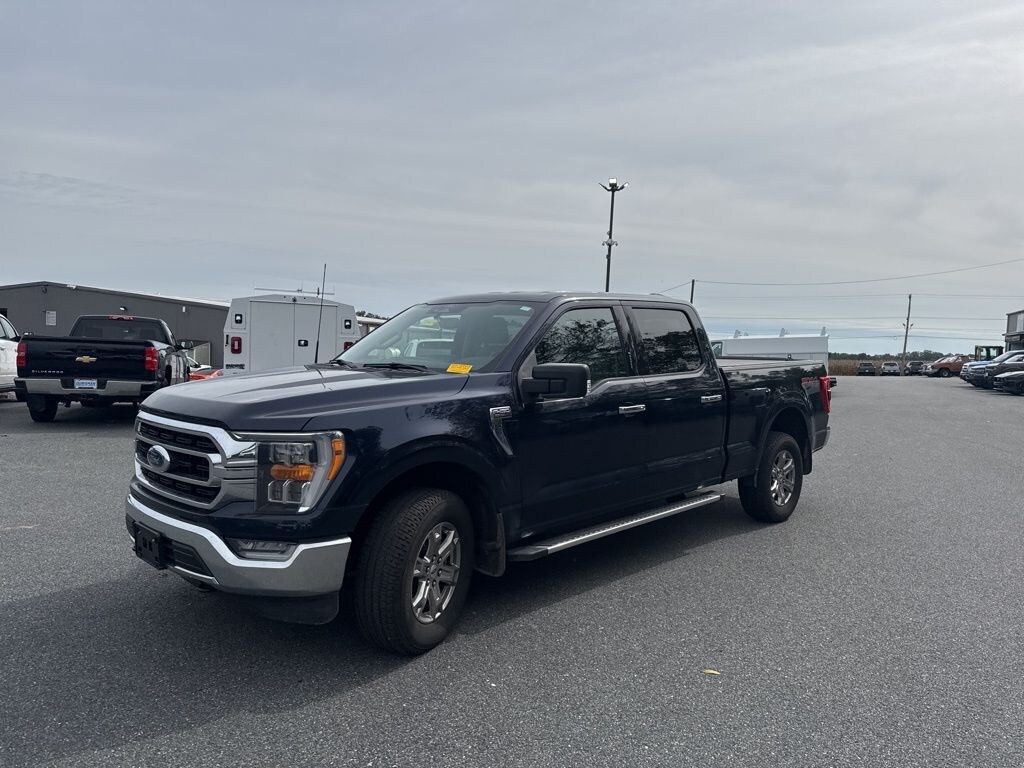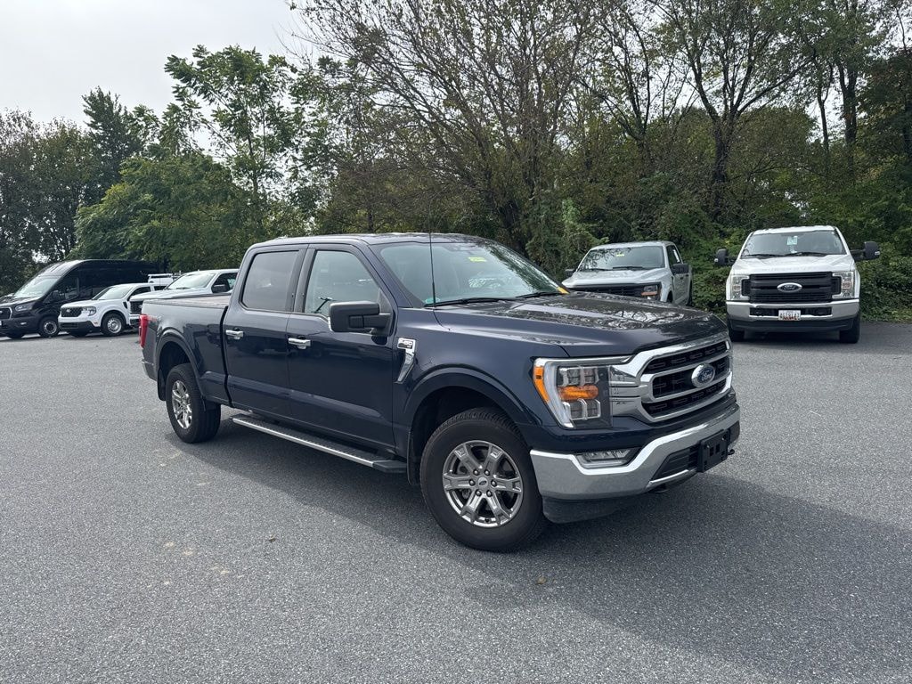 . Clean CARFAX. **MARYLAND STATE INSPECTED**, F-150 XLT, 4D SuperCrew, 5.0L V8, 10-Speed Automatic, 4WD, Antimatter Blue Metallic, Black w/Medium Dark Slate w/Cloth 40/20/40 Front Seat, 10-Way Power Driver & Passenger Seats, 2-Bar Style Grille w/Chrome 2 Minor Bars, 4x4 FX4 Off-Road Bodyside Decal, 8" Productivity Screen in Instrument Cluster, Auto-Dimming Rear-View Mirror, Bright Polished Step Bars, Chrome Door & Tailgate Handles w/Body-Color Bezel, Chrome Single-Tip Exhaust, Class IV Trailer Hitch Receiver, Dual Zone Electronic Automatic Temperature Control, Equipment Group 302A High, FX4 Off-Road Package, Heated Front Seats, Hill Descent Control, Integrated Trailer Brake Controller, Intelligent Access w/Push Button Start, Leather-Wrapped Steering Wheel, LED Reflector Headlamps, LED Sideview Mirror Spotlights, Monotube Rear Shocks, Off-Road Tuned Front Shock Absorbers, Onboard 400W Outlet, Power Glass Heated Sideview Mirrors, Pro Trailer Backup Assist, Radio: AM/FM SiriusXM w/360L, Rear Under-Seat Storage, Remote Start System w/Remote Tailgate Release, Rock Crawl Mode, SecuriCode Drivers Side Keyless-Entry Keypad, SYNC 4 w/Enhanced Voice Recognition, Trailer Tow Package, Tray Style Floor Liner (47W), Wheels: 18" Chrome-Like PVD, XLT Chrome Appearance Package, Zone Lighting. 4WD
