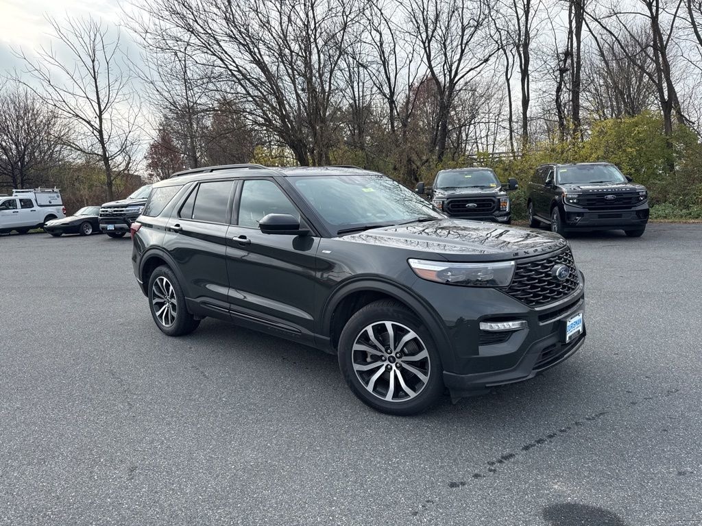 . **MARYLAND STATE INSPECTED**, Explorer ST-Line, 4D Sport Utility, 2.3L EcoBoost I-4, 10-Speed Automatic, 4WD, Forged Green Metallic, Ebony Activex/Red Stitching Leather, Equipment Group 250A, Navigation System, Twin Panel Moonroof. 4WD
